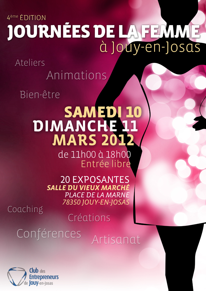 A l’occasion de la Journée mondiale de la Femme, le Club des Entrepreneurs de Jouy-en-Josas organise les 10 et 11 mars 2012 à la salle du Vieux Marché à Jouy-en-Josas un rendez-vous exceptionnel : les Journées de la Femme.